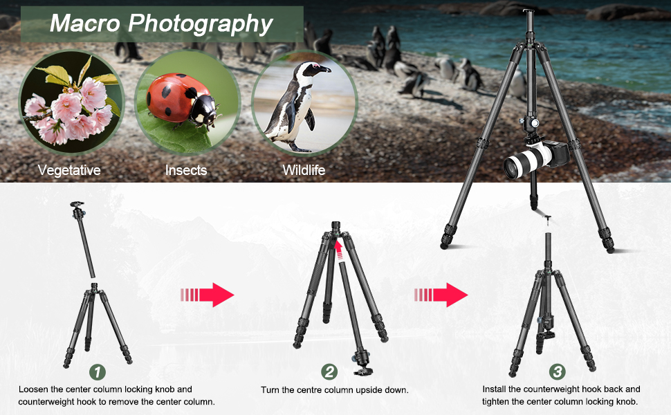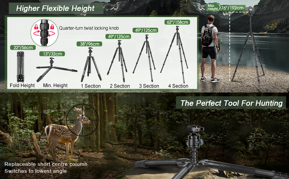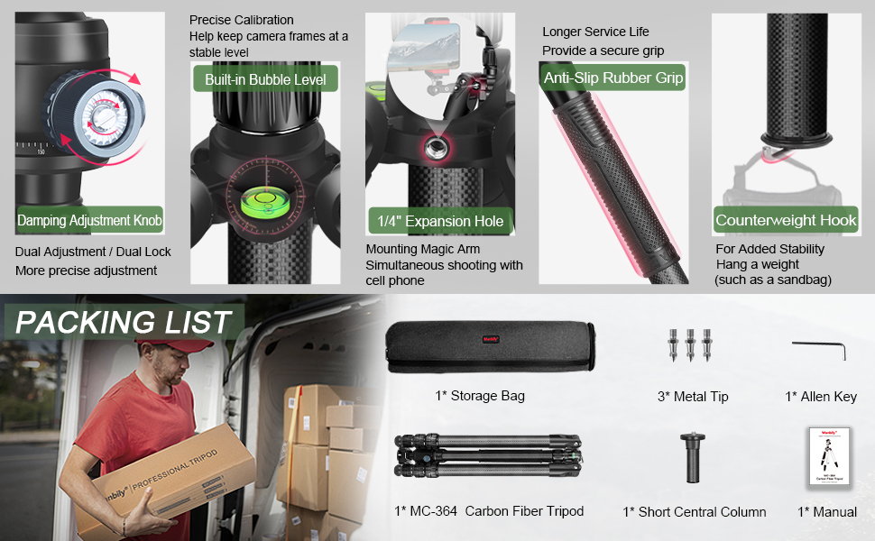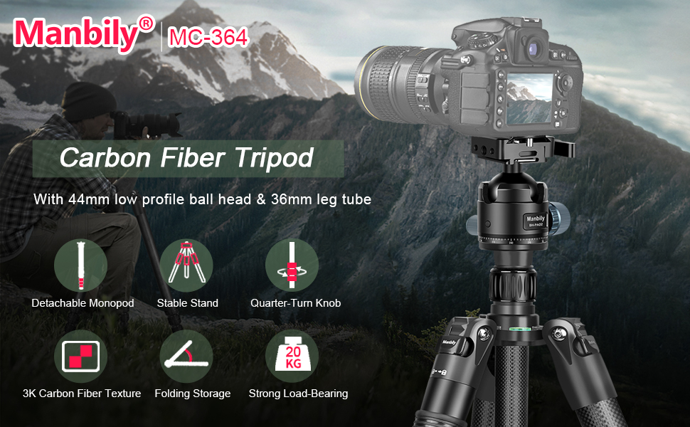 Manbily MC-364 Professional Heavy Duty Carbon Fiber Tripod Video Camera Tripods