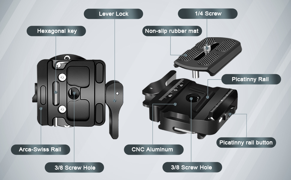 Manbily PA-03 Aluminum Shooting Rest Clamp Quick Release Plate Hunting Rest Stand Quick Release Arca Swiss Rail for Tripod