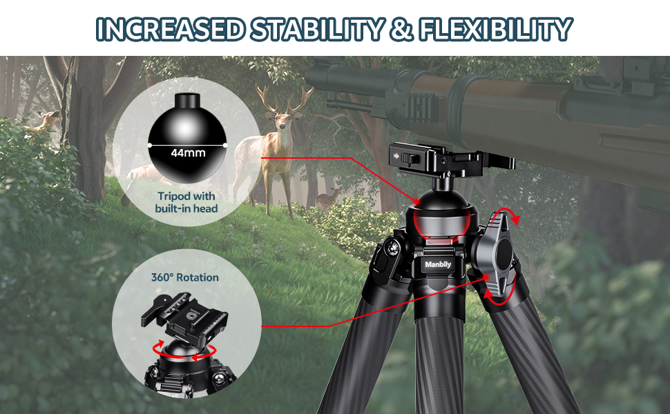 Manbily TS-364PA Shooting Tripod for Hunting Outdoor Shooting Carbon Fiber